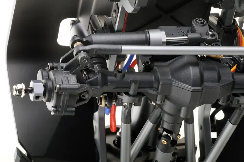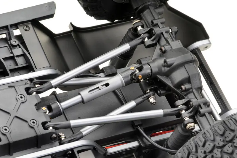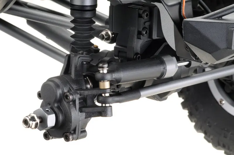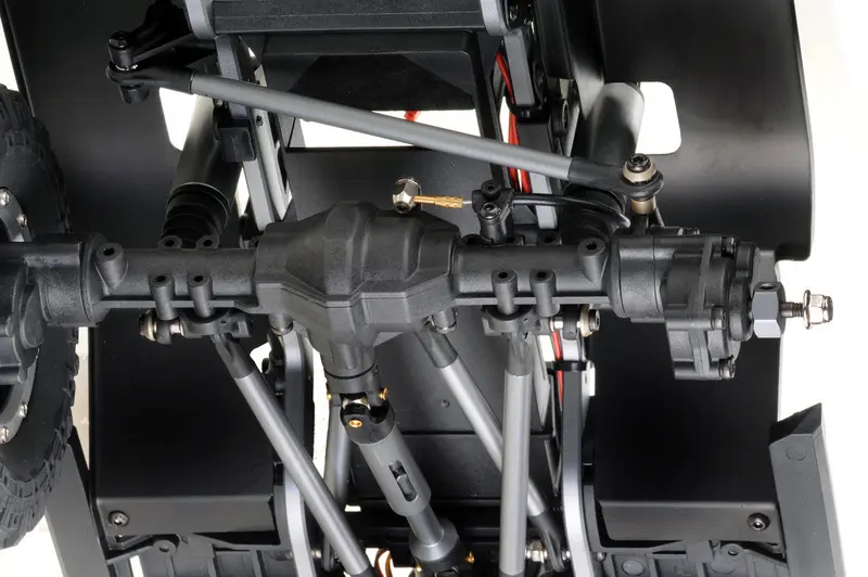 Lock and unlock the front and rear differential independently to get the maximum performance on the track – all controlled remotly from your tranmitter and 2x 0,9kg mini servos. Leave the differential unlocked for a smooth hadling at high speed. On tecnical trails you can lock the front differential, the rear differential or even both to handle extreme terrain.