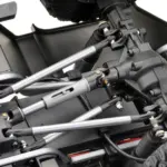 A realistic designed 5mm CNC machined aluminum frame with a heavy duty aluminum 4-link suspension system