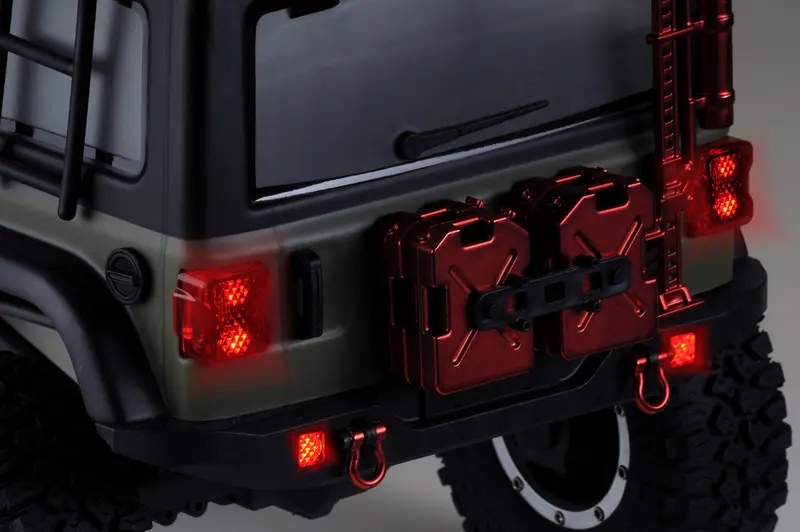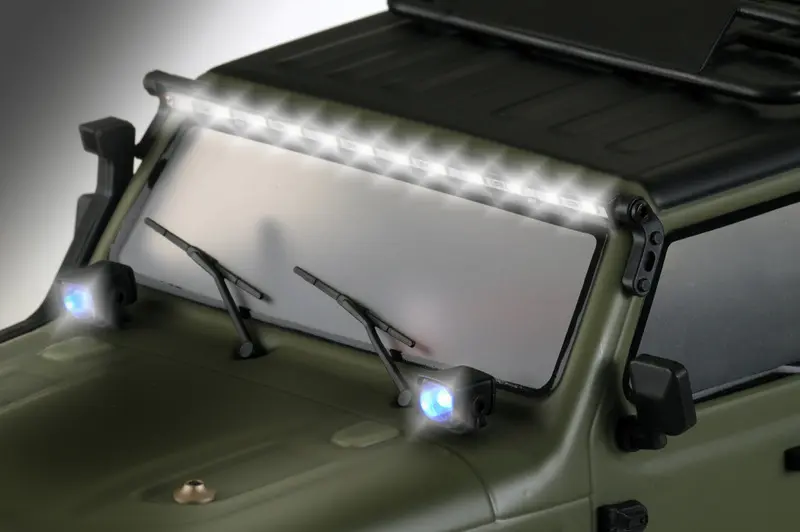 The 2.4 GHz 6-channel radio system gives you total control over your vehicle – wether lighting system, 2-speed gear, diff. locks or top speed adjustment.