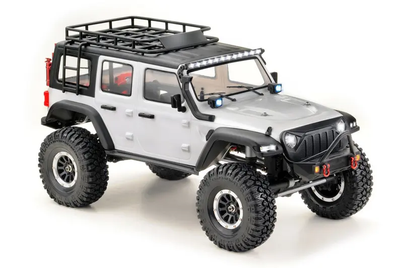 Stylish 1.9″ beadlock wheels with aluminum rings and 10 bolt design. Super soft tires with a realistic sidewall flex for maximum traction on the rocks. Wheel size: 43×120 mm.