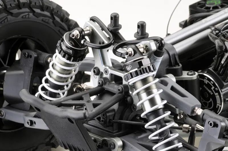 The ESC with its 150A continuous current also has a fan which ensures a perfect operating temperature. The electronics are powered by either two 2S batteries or two 3S batteries with XT90 high current connectors which fit perfectly into the two battery compartments in the rear of the vehicle. Due to the well thought-out distribution of all components, an optimal weight distribution is guaranteed.