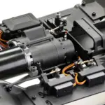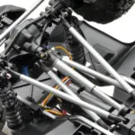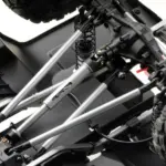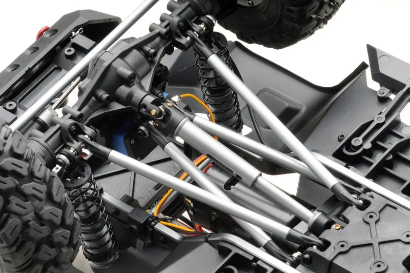A realistically designed 5mm CNC machined aluminum frame with a heavy-duty aluminum 4-link suspension system.