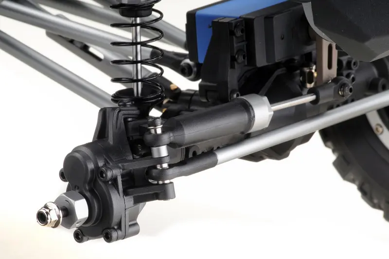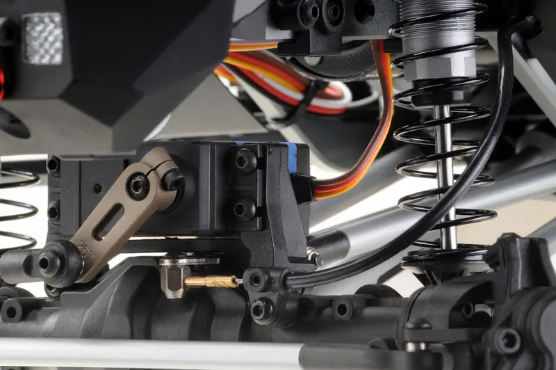 A unique hydraulic steering shock absorber design combined with a 25kg (actuating force) digital and waterproof steering servo with aluminum servo arm allow a steering angle of up to 43°.