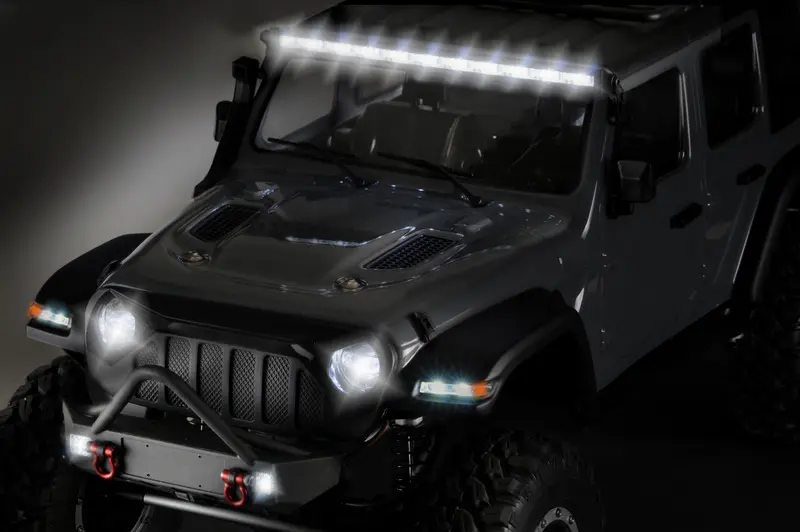 The 6-channel 2.4 GHz radio system gives you total control over your vehicle – whether it’s the light unit, 2-speed transmission, differential locks or setting the top speed.