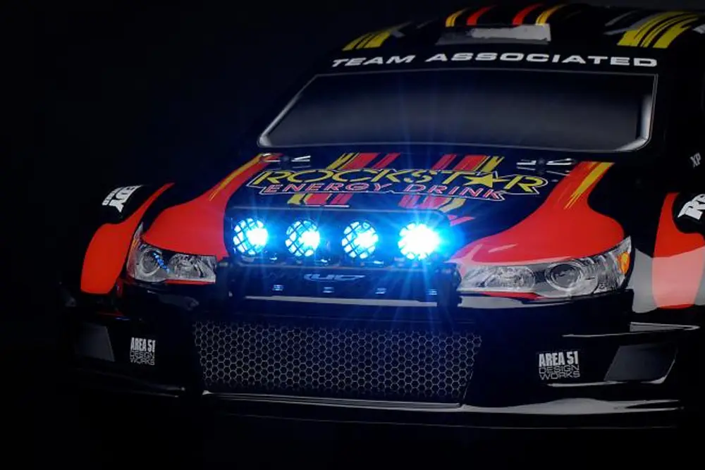 Team Associated XP light kits cut through the darkness with realistic lighting arrays that feature headlights, tail lights, fog lights, and reverse lights – and a police light bar kit.