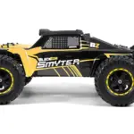 With their 4WD shaft drivetrain, independent double wishbone suspension, adjustable coilover shocks and 4-Gear differentials both front and rear – the Smyter clambers over all kinds of terrain both indoors and out, giving you all-out fun wherever you choose to drive! Plus with its protective gear cover, servo saver built into the servo horn and splashproof electronics – you needn”t worry about puddles or debris standing in your way!