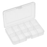 Very handy and useful box for parts storage. Tough, durable, translucent plastic box with pre-set compartments. Easy, quick-access storage for small parts.