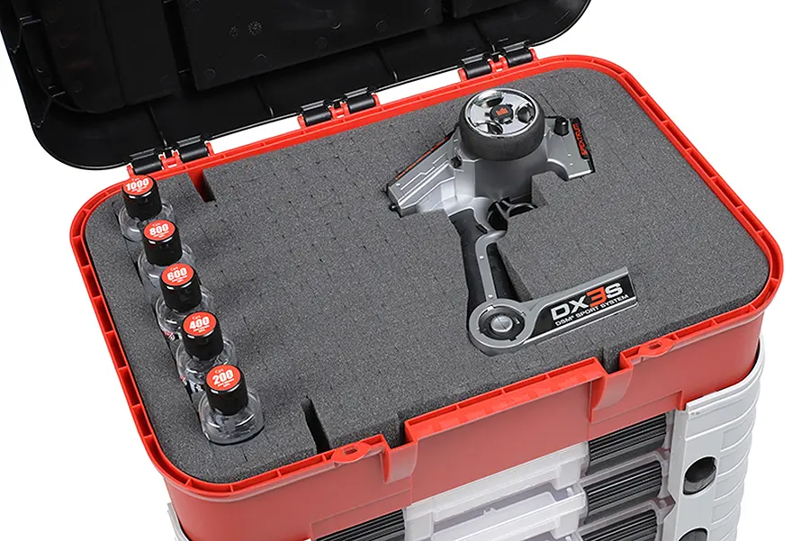 Team Corally’s brand new polypropylene PIT CASE features four large assortment boxes with adjustable compartments and secure locks,roomy storage under the lid for your transmitter or charger and 3 extra lid compartments with movable dividers.
