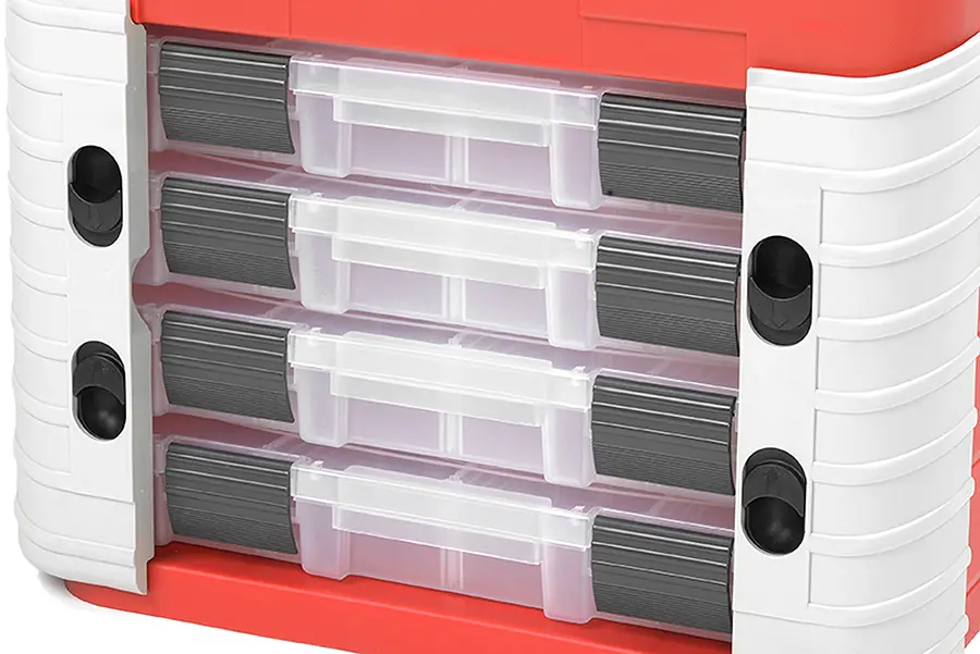 - 4 large assortment boxes with adjustable compartments