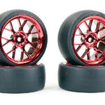 Fastrax 1/10 (4) Drift D1 Tyre W/3mm 14-Spoke Wheel – Met Red