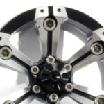 Suitable for most popular 1/10th scale crawlers with a 12mm Hex fitment, these all aluminium 1.9” sized, 3-piece beadloc wheels are the ultimate finish to any scale rig. Featuring a black anodised and machined face, these 6-spoke wheels mirror the aggressive styling of full size all terrain designs. Once mounted on your rig a bolted centre cap hides your wheel nut and axle assembly for a truly stunning finish. Furthermore the heavy centre ring adds much needed weight on all four corners to keep your chassis on the ground and ready to drive up and over any terrain.