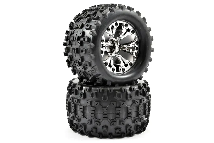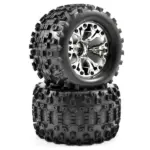 Suitable for most 1:10 Monster trucks with 12mm Hex fit and 5mm axle. Sold as pair.
