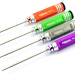Inexpensive set with aluminium machined and anodised handles. Hard bit. Four metric sizes – 0.050, 1/16, 5/64, 3/32