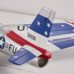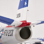 Building upon their extensive experience in developing remote-controlled model fighter aircraft, FMS has made significant efforts to faithfully replicate the legendary and classic F-86 “Sabre” with the product standard of “perfect appearance, excellent performance.” The model is filled with numerous realistic details, such as operable landing-gear doors, retractable CNC-machined landing gear, movable airbrakes, wing navigation lights (red on the left, green on the right), jet nozzle navigation lights (one red, one white), and landing lights (white). The static model-level exterior details have also been meticulously addressed, including fuel tanks, cockpit interior (molded plastic parts), and antennas. It’s worth mentioning that the interior plastic parts of the cockpit and the airbrakes have both undergone an antiquing process, creating a bridge to the past.