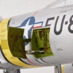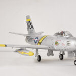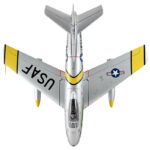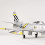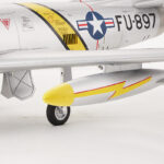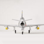 Building upon their extensive experience in developing remote-controlled model fighter aircraft, FMS has made significant efforts to faithfully replicate the legendary and classic F-86 “Sabre” with the product standard of “perfect appearance, excellent performance.” The model is filled with numerous realistic details, such as operable landing-gear doors, retractable CNC-machined landing gear, movable airbrakes, wing navigation lights (red on the left, green on the right), jet nozzle navigation lights (one red, one white), and landing lights (white). The static model-level exterior details have also been meticulously addressed, including fuel tanks, cockpit interior (molded plastic parts), and antennas. It’s worth mentioning that the interior plastic parts of the cockpit and the airbrakes have both undergone an antiquing process, creating a bridge to the past.