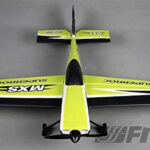 Built from super strong EPO foam, the MXS is glueless, requiring only 10 screws. Add your 4 channel receiver and 3s 2200mAh battery and you are ready to fly. The strong tube spars in the wing and tail create a super rigid structure that can withstand even the harshest 3D punishment. The updated powerful 3541 1230kv Outrunner, 40amp ESC, & 4 full Metal Gear Digital servos are pre-installed. The precision ball links and rods expedite assembly time and provide precise control of nearly any aerobatic manoeuvre desired. Extra long servo arms are designed in an over-center position from the control surface horns to provide massive amounts of control surface throw for low speed Harrier & hovering flight. Wing tip Side Force Generators further enhance the low speed performance by directing the airflow over the ailerons for more positive control. Tough but lightweight aluminium landing gear with large 2 1/2β wheels make grass take-offs and landings a breeze. A large, magnetic hatch makes changing the battery quick and easy task! Painted in bright green and black, the new version 2 MXS is sure to get plenty of attention at the flying field!