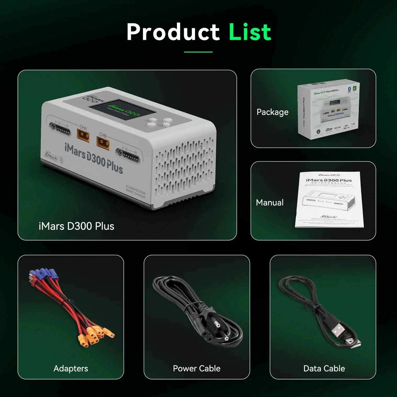 The Gens Ace iMars D300 Plus is a new dual-channel smart charger based on the D300. It keeps the core features of the G-Tech system and adds Bluetooth remote control. RC enthusiasts can now use the Gens Ace app to manage and view more real-time data and historical records, making the experience simpler, more efficient, and safer.