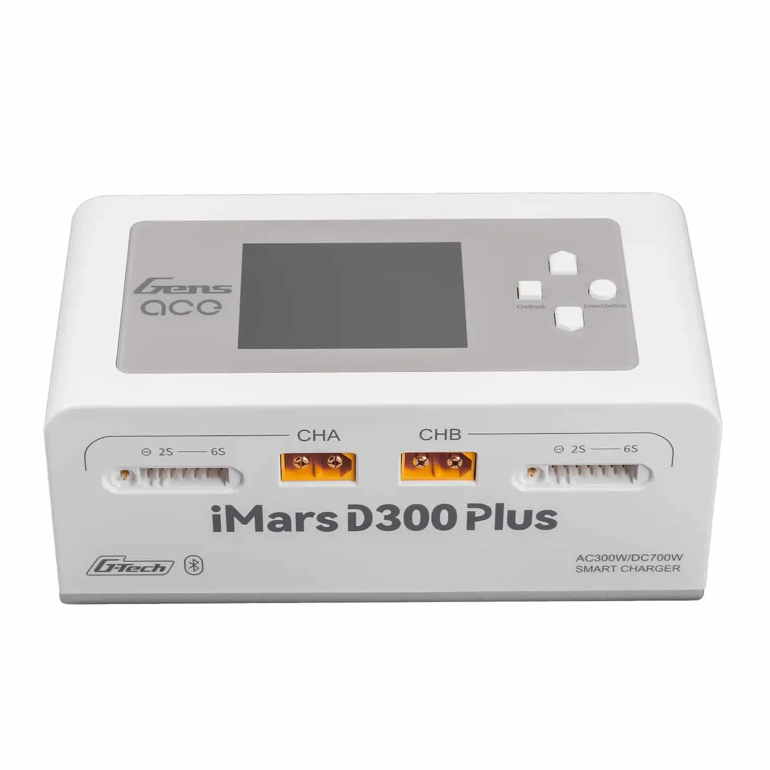 The Gens Ace iMars D300 Plus is a new dual-channel smart charger based on the D300. It keeps the core features of the G-Tech system and adds Bluetooth remote control. RC enthusiasts can now use the Gens Ace app to manage and view more real-time data and historical records, making the experience simpler, more efficient, and safer.