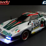 Clear unpainted super detailed Lancia Stratos (1977 Giro d’Italia) bodyshell.
