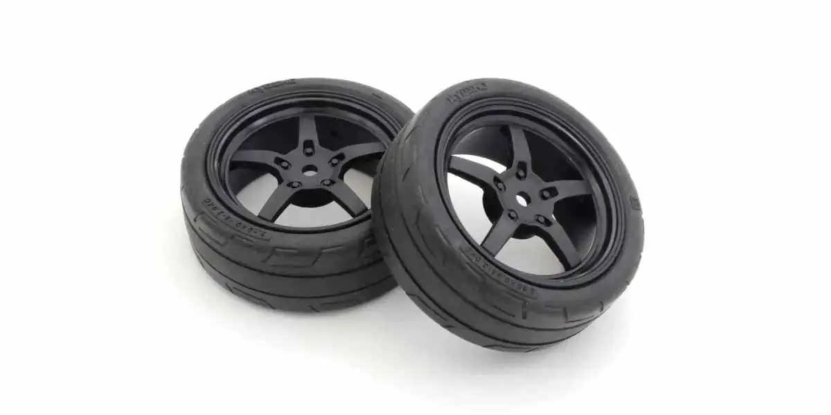 Kyosho 1:10 Fazer Fz02 Pre-Glued 5-Spoke Black Rims Medium Tyres (2)