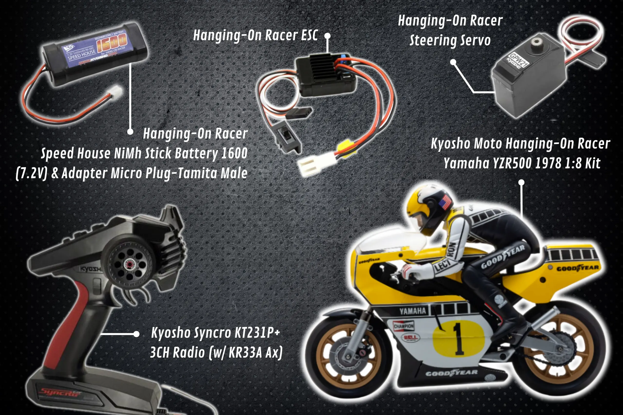 Kyosho’s 1/8 scale electric R/C Hang-On Racer motorcycle series has long been loved for its dynamic action and groundbreaking technology. The S.D.S.S. (Semi-Direct Steering System) allows fully