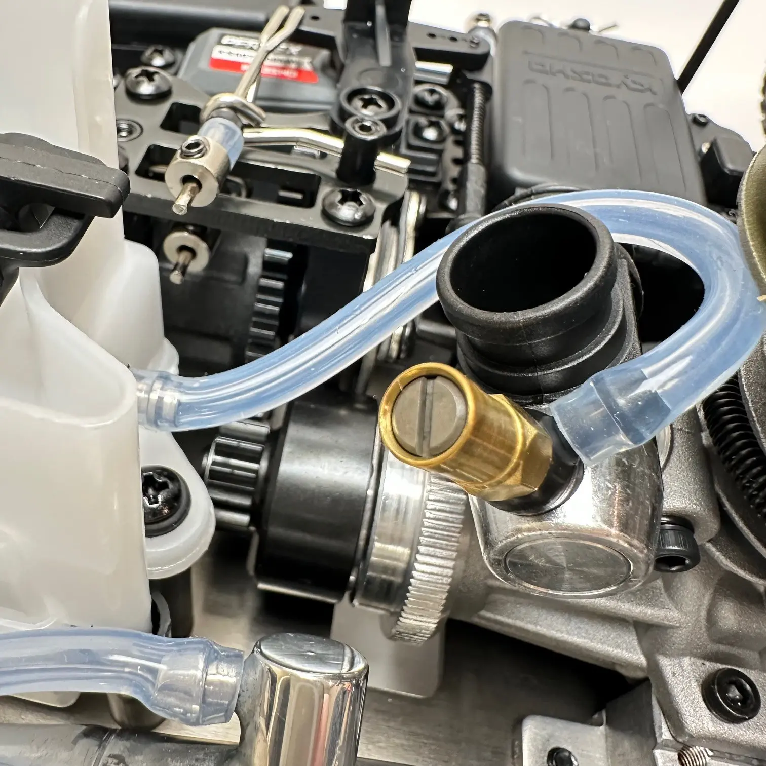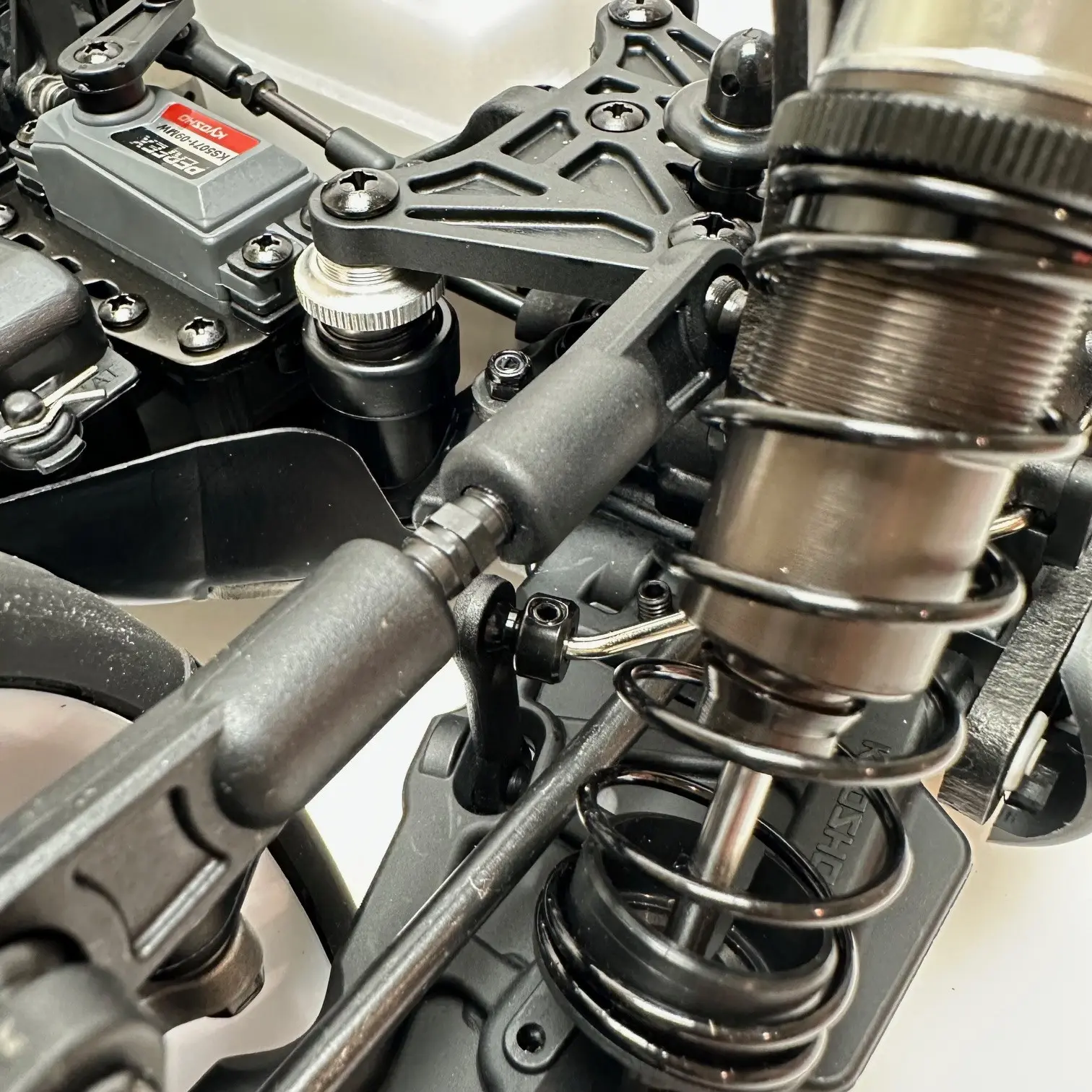Newly developed high-torque steering servo optimal for heavy 1/8 GP buggies is pre-installed and adjusted on the chassis. The receiver is equipped with a fail-safe function in the event of frequency interruption.