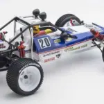 As the 5th model to make its return as part of the vintage series, the ever-popular Scorpion released in 1982 was relaunched 2 years ago and has undergone a detailed overhaul to match modern performance with retro styling. The new Turbo Scorpion remains true to the essence of the unique Scorpion design throughout, but features Scorpion-style wheels in the larger 2.2 inch modern standard wheels for improved off-road performance. In addition, 12mm oil shocks based on the Optima deliver rock-solid running stability and excellent damping characteristics that work in combination with high-grip front and rear tires with a 20mm wider front tread and 10mm longer wheelbase than the original Scorpion to realize improved control and handling performance. With a thorough modernization, the new Turbo Scorpion is ready and willing to accept modern-day power sources and compete on modern race circuits. The standard Turbo Scorpion is a fully optioned chassis configuration and is ready to take the punishment that goes with hard driving.