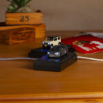 Only a USB type-C cable can be connected to the base system and is required to be purchased separately. This is the standard cable used to charge many modern smartphones. To activate the light, simply place the model on the minicar base and place it on the base system.