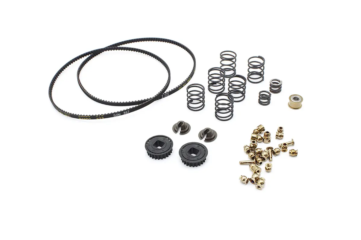 The kit includes a clutch suitable for the OS-12TG engine with clutch springs optimal for rubber tires designated for the KYOSHO CUP as well as clutch springs for sponge tires to compete in open races.