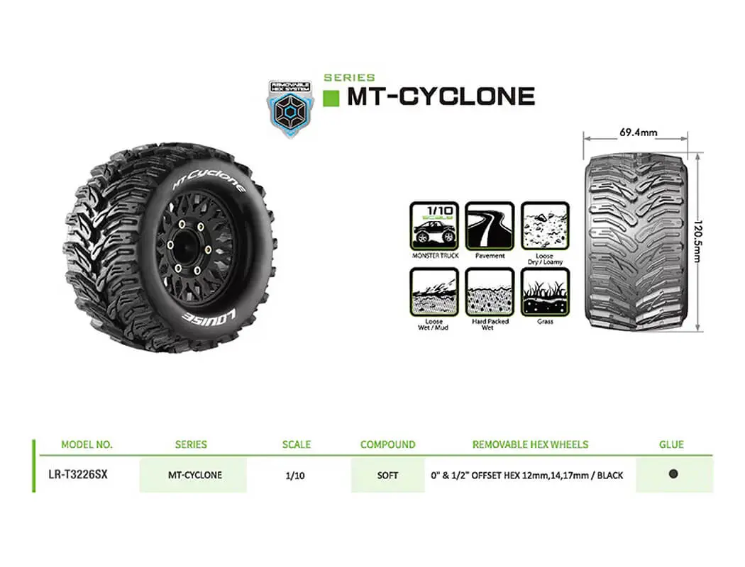 Louise Rc Mt-Cyclone Removable Hex 12,14,17mm 0″& 1/2″ Offset