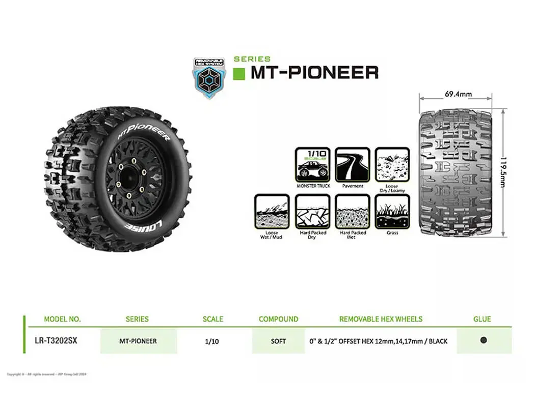 LOUISE RC MT-PIONEER REMOVABLE HEX 12,14,17mm 0″& 1/2″ OFFSET
