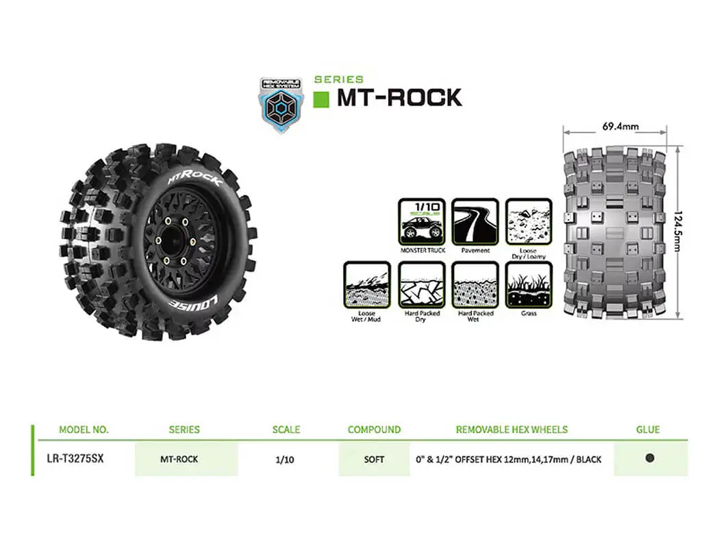 LOUISE RC MT-ROCK REMOVABLE HEX 12,14,17mm 0″& 1/2″ OFFSET
