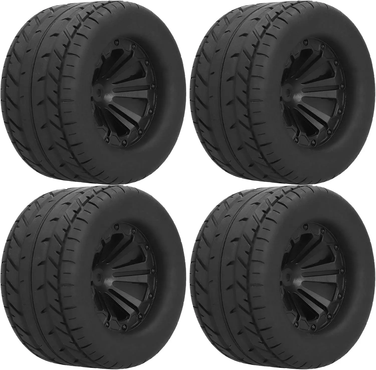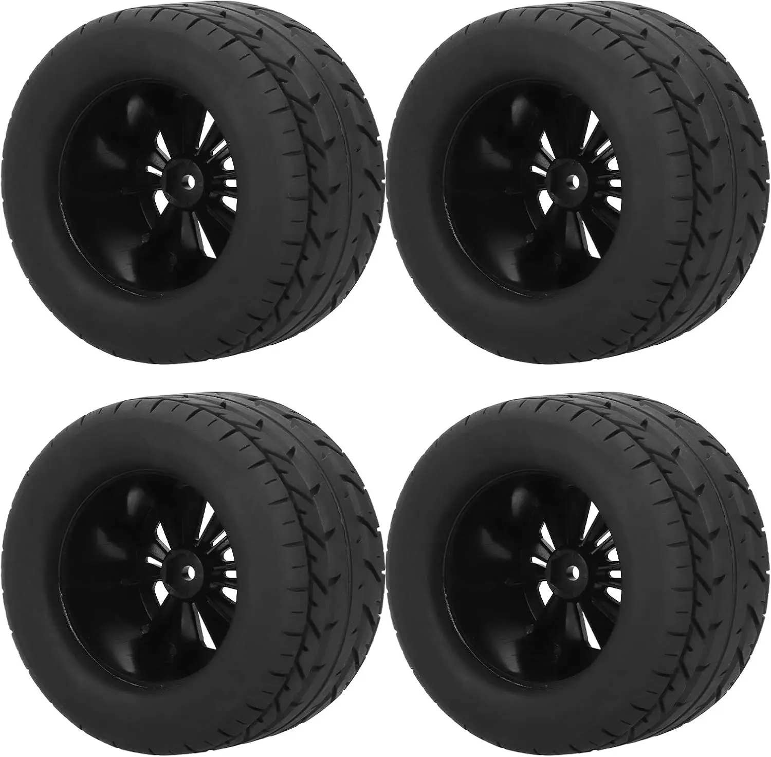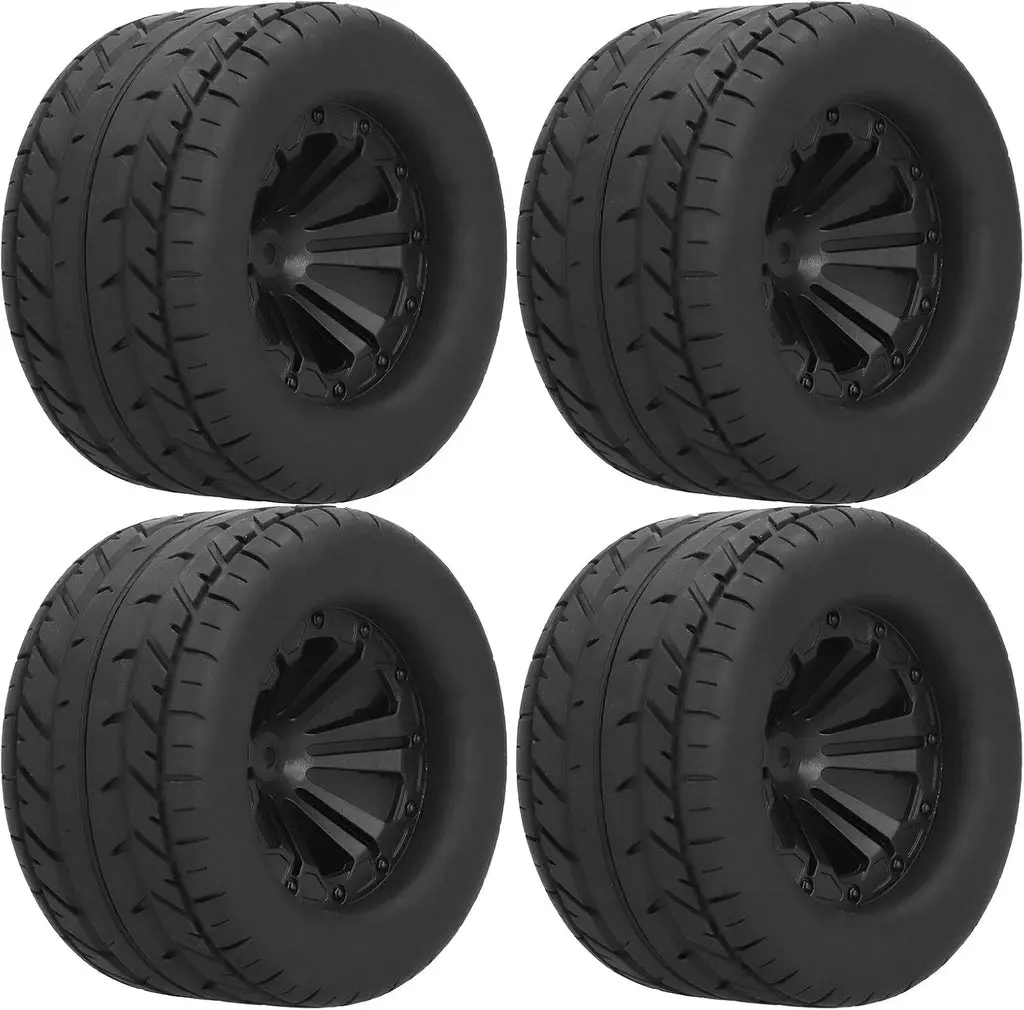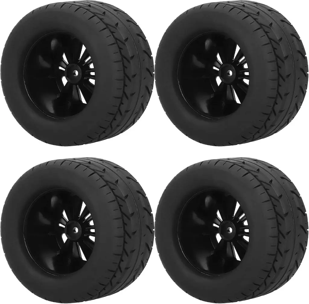 Set of 4 on-road wheels and tyres for the MJX 10208. The tyres use a soft but durable rubber compound resulting in vastly improved handling on on-road surfaces. These wheels/tyres are already glued making them ready to use.