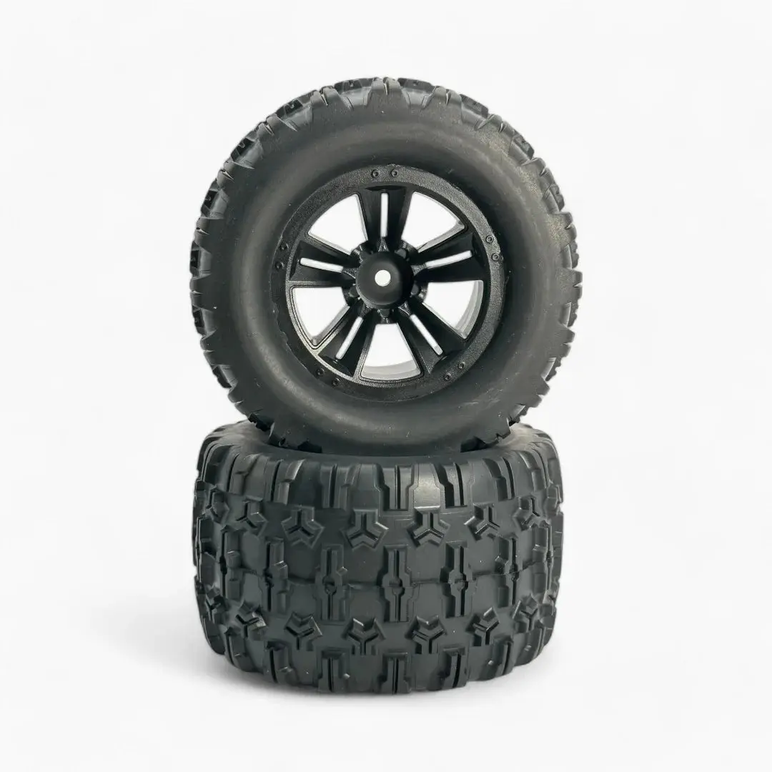 Replacement set of 4 wheels and tyres for the MJX 10208. These wheels/tyres are already glued making them ready to use. Part number 1015A.