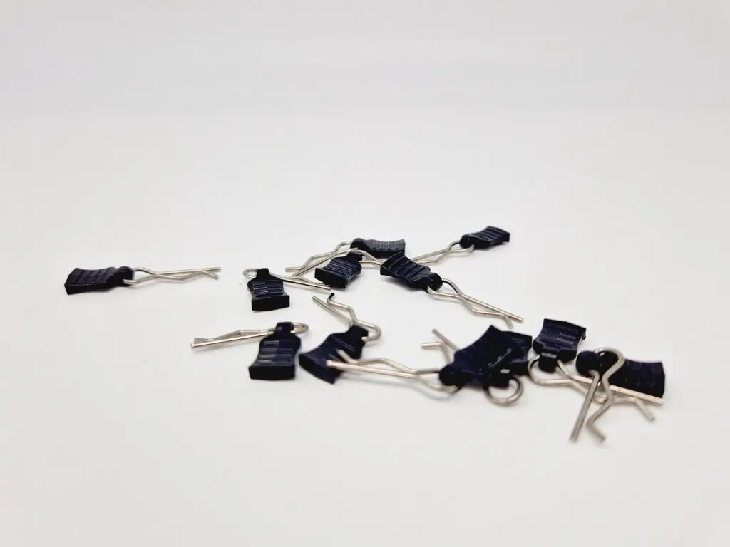 Pack of 12 replacement body clips to fit MJX and HBX models. Part number M001.