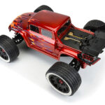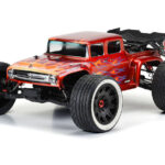 This is a 1956 Ford® F-100 Clear Body for Kraton™ 8S. Pro-Line is excited to bring some retro classic styling to the Kraton™ 8S for the first time! This old-school Ford® F-100 body completely transforms the look of your truck, featuring a custom hot-rod style extended cab, aggressive fender flares, and the iconic old-school chrome grill of the ’56 blue oval fan favorite. Pair the F-100 with the Menace 5.7″ Belted Tires (PRO1020510) for a true street machine combo!