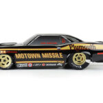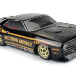 Pro-Line is proud to introduce one of the most iconic Pro Stock bodies of all-time: the Motown Missile! In 1972, fully backed by Chrysler, MOPAR began to secretly develop a Barracuda into the ultimate Pro Stock drag car and “The Missile” was born. It was driven by Don Carlton and the rest, as they say, is history. Now you can have your very own fully licensed replica of the 1972 Plymouth Barracuda Motown Missile Edition Tough-Color Black body for your No Prep Drag Car! This body is made from pre-colored black body material, so you never have to worry about paint chipping or peeling off, hence the name Tough-Color. This body includes high-quality Motown Missile graphics that perfectly match those found on the original version of this iconic dragster. We recommend using our Hoosier 2.2″ Drag Racing Front Tires (PRO10158203) on the front and Hoosier Drag Slick SC 2.2″/3.0″ Drag Racing Tires (PRO10157203) in the rear, and painted Slot Mag Drag Spec Wheels (PRO279205/PRO279305) to complete the ultimate hot-rod look. Get your own Motown Missile Drag Body today!