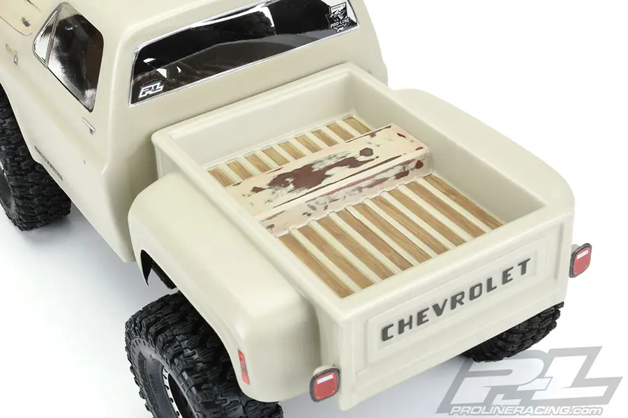 This is a 1978 Chevy® K-10™ Cab & Bed Clear Crawler Body. Pro-Line has a brand new body for all of the Scale Crawler fans: a Licensed 1978 Chevrolet® K-10™ Cab and Bed! Now you can make your crawler look even more scale with this short box step side Chevy® Cab and Bed which is one of the hottest and rarest nostalgic full-size trucks. The 1978 K-10™ body has been carefully sculpted with realistic details that recreate the lines and squared off style of this iconic truck! The separate Cab and step side Bed gives Pro-Line the ability to mold even more realism into the body and is designed to fit standard 12.3” wheelbase crawlers. Transform the look of your truck with the realistic 1978 Chevrolet® K-10™ body from Pro-Line!