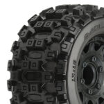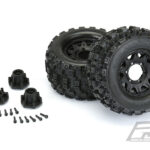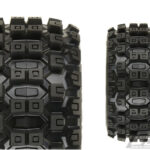 This is a pair of pre-mounted Badlands MX28 2.8” Tires on Raid Removable Hex Wheels. Pro-Line is very excited to announce the availability of the Badlands MX 28 2.8″ tire pre-mounted to the Raid Black Removable Hex wheel! Pro-Line is taking the 2.8″ tire game to the next level with the Biggest and Baddest tire ever conceived: the Badlands MX28! Pro-Line Badlands tires are known for having sweet Motocross inspired tread and the Badlands MX28 tires kick that up a notch with a Bigger and Bolder knobby tread that matches modern MX tire design.