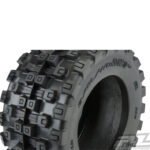 Pro-Line has developed the technology to mold a High-Performance herringbone weave pattern Belt inside of the Badlands MX38 HP tires that will prevent the tire from ballooning or expanding during use. This will give you maximum control to put the power down even at high speeds! The Badlands MX38 HP 3.8″ tires provide the incredible grip that you expect from Pro-Line due to the soft M2 compound and the aggressive Motocross inspired tread. Pro-Line also heard the calls for a new tire size to fit the current generation of Monster Trucks and the all new MX38 HP delivers at 3.48″ wide and 6.8″ tall. Just like all of Pro-Line’s tires, they are proudly Made in the USA!