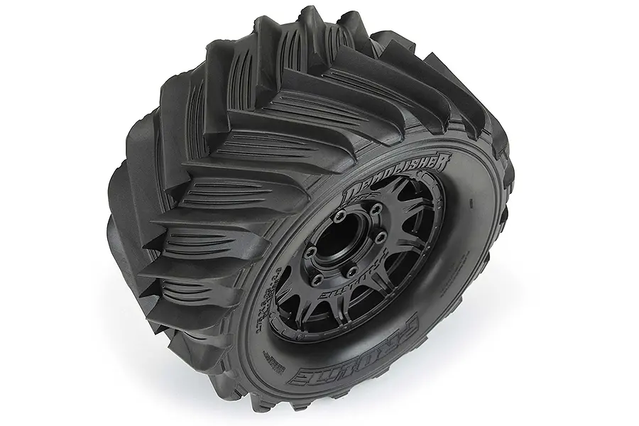 Are you looking for a scale and aggressive tire for your 1:10 Monster Truck? Pro-Line has the solution for you! Introducing the Demolisher 2.8″ tire that features extremely sharp chevron style tread that will bite into any surface. Just like full-size monster truck tires that have been modified and grooved for maximum performance, the Demolisher tires feature scale grooves in between the chevron style tread for exceptional scale realism and extremely sharp tread. As you should expect from Pro-Line, the all-new Demolisher tire is made from soft and sticky rubber that will give your Monster Truck maximum wheelie-popping traction.