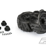 This is a pair of pre-mounted Dumont 2.8″ Tires on Raid Black 6×30 Removable 12mm Hex Wheels. Are you ready for the most extreme 2.8″ Paddle tires Pro-Line has ever made for 1:10 Monster Truck? Introducing the all-new Dumont 2.8″ tires that have been designed from the ground up to sling sand and snow further than ever before and look good doing it!