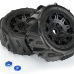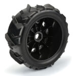 This is a pair of Dumont Paddle Sand/Snow Tires Mounted on Raid 5.7″ Black Wheels . Are you ready for the most extreme Paddle tires Pro-Line has ever made for Monster Truck? Introducing the Dumont 5.7″ tires that have been designed from the ground up for your X-MAXX® and KRATON™ 8S to sling sand and snow further than ever before and look good doing it!