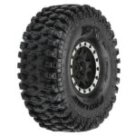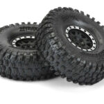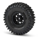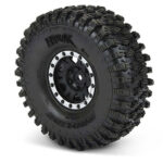 The future of 1.9″ Tire Performance has arrived with Pro-Line’s Hyrax 1.9″ Predator Tire mounted to Impulse Black/Silver Wheels! Designed for maximum grip on the toughest terrain, the Hyrax tire is ready for anything your Scale Adventure might throw at you. The Hyrax features an aggressive and open tread pattern with each tread block containing multiple sipes for incredible tread flex. The highly detailed connected tread on the sidewall of the Hyrax extends out for unmatched side-hilling performance. The Hyrax also features futuristic stepped tread blocks that create even more forward gripping edges that dig into slick rock like no other scale tire Pro-Line has produced to date! The Hyrax is made from Pro-Line’s Super Soft Predator material, so you know it provides the maximum performance possible.