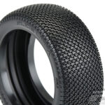 This is a pair of Slide Lock 1:8 Buggy Tires. The Slide Lock is a unique new tire design from Pro-Line that is made specifically for smooth, low grip tracks. The Slide Lock features a pattern of small, tightly packed hexagon and triangle shaped pins so you can lay down as much rubber as possible. The tread on the new Slide Lock is laid out wider across the tire carcass for a flatter profile overall compared to other Pro-Line 1:8 Race Tires. Each hexagon pin has a deep sipe down the middle of the tread for added flex and grip on even the slickest of surfaces. The built-in tread flex means you can run harder compounds for longer wear and still have good traction when you need it. The large and stiff side pins reach far down the sidewall to reduce edginess as much as possible. Be the first at your track to win with Pro-Line’s new Slide Lock tire.