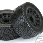 This is a pair of pre-mounted Street Fighter HP 3.8″ Belted Monster Truck Tires. Are you looking for the ultimate street tire for your 3.8″ Monster Truck? Pro-Line now has the solution for you with the all-new Street Fighter HP BELTED 3.8″ tires! Pro-Line has developed the technology to mold a High-Performance herringbone weave pattern Belt inside of the Street Fighter HP tires that will prevent the tire from ballooning or expanding during use. This will give you maximum control to put the power down even at high speeds! The Street Fighter HP 3.8″ tires provide the incredible grip that you expect from Pro-Line due to the soft M2 compound and the aggressive tread grooves. Pro-Line also heard the calls for a new tire size to fit the current generation of Monster Trucks and the Street Fighter delivers at 3.11″ wide and 6.22″ tall. Get maximum grip and stability so you can be faster than your buddies with Pro-Line’s all-new Street Fighter HP 3.8″ Monster Truck tires!