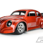 This is a VW® Drag Bug Clear Body for Drag Racing. One of the most recognizable body styles of all-time is now available for your No Prep Drag Car! Introducing the officially licensed VW® Drag Bug body with all of the performance and style you expect from Pro-Line. Designed from the ground up to mimic full-size bugs competing in drag races around the world, the Pro-Line Drag Bug features the iconic Bug body shape, rounded fender flares, rear engine detail and a large rear spoiler to get you down the track as straight as possible. If you are looking for the most unique drag body for your No Prep Drag car, then look no further than Pro-Line’s new VW® Drag Bug!