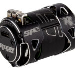 The incredible performance of the SP5 starts at the heart of the motor–the stator. Designed in-house, the stator’s profile is intended to achieve maximum torque and power output without sacrificing RPM. High-quality copper magnet wire, sized to the maximum that the rules allow and wound with care to keep resistance near the legal minimum, is treated with heat transfer epoxy to dissipate heat and reduce internal temperatures resulting in less fade over the course of the race. An oversized collector ring not only dissipates heat, but in conjunction with thick solder tabs, reduces resistance and power loss.
