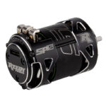 The incredible performance of the SP5 starts at the heart of the motor–the stator. Designed in-house, the stator’s profile is intended to achieve maximum torque and power output without sacrificing RPM. High-quality copper magnet wire, sized to the maximum that the rules allow and wound with care to keep resistance near the legal minimum, is treated with heat transfer epoxy to dissipate heat and reduce internal temperatures resulting in less fade over the course of the race. An oversized collector ring not only dissipates heat, but in conjunction with thick solder tabs, reduces resistance and power loss.