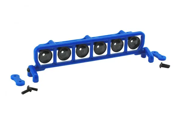 Our Roof-Mounted Light Bar Set looks just like the roof light sets of current Baja 1000 trucks. It incorporates six of our light canisters (the same used in the front bumper light set of RPM #80982 & #80983). Each of the six canisters is capable of holding a high intensity, 3mm LED (not included) for the ultimate in nighttime off-road racing experiences. What’s best? These light sets will fit all current 1/10th and most 1/8th scale (although specifically designed for 1/10th scale) “Short Course”-style bodies! That’s right, they will fit the Traxxas Slash, Associated SC10, Losi Strike & HPI Blitz to name just a few.